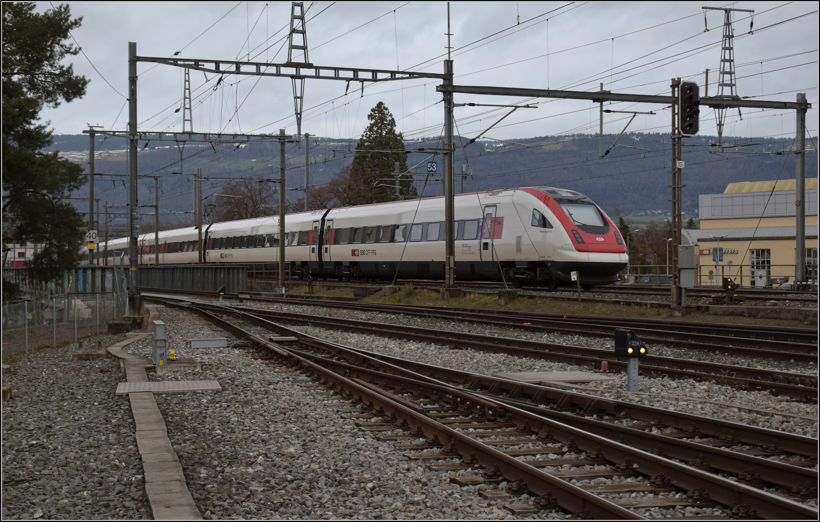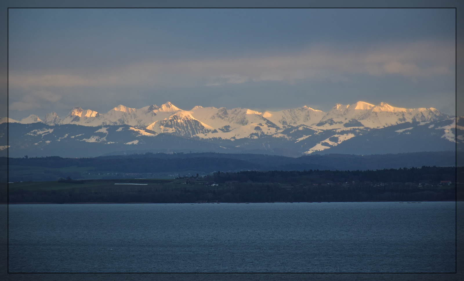 An diesem Tag wird die Gantrisch-Gruppe wunderbar freigestellt von den dahinterliegenden höheren Bergen. Trotz Niederschlägen vor den Bergen ist die Sicht vom Jurasüdfuss auf die wunderbar beleuchteten Berge nur ein wenig getrübt. Gorgier, Dezember 2025. km0