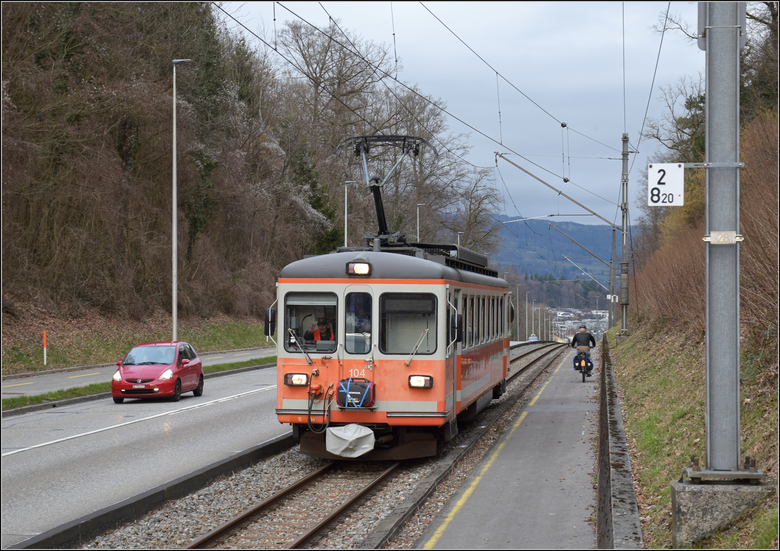 Be 4/4 104 auf dem Weg von Wiedlisbach nach Attiswil. Februar 2026.