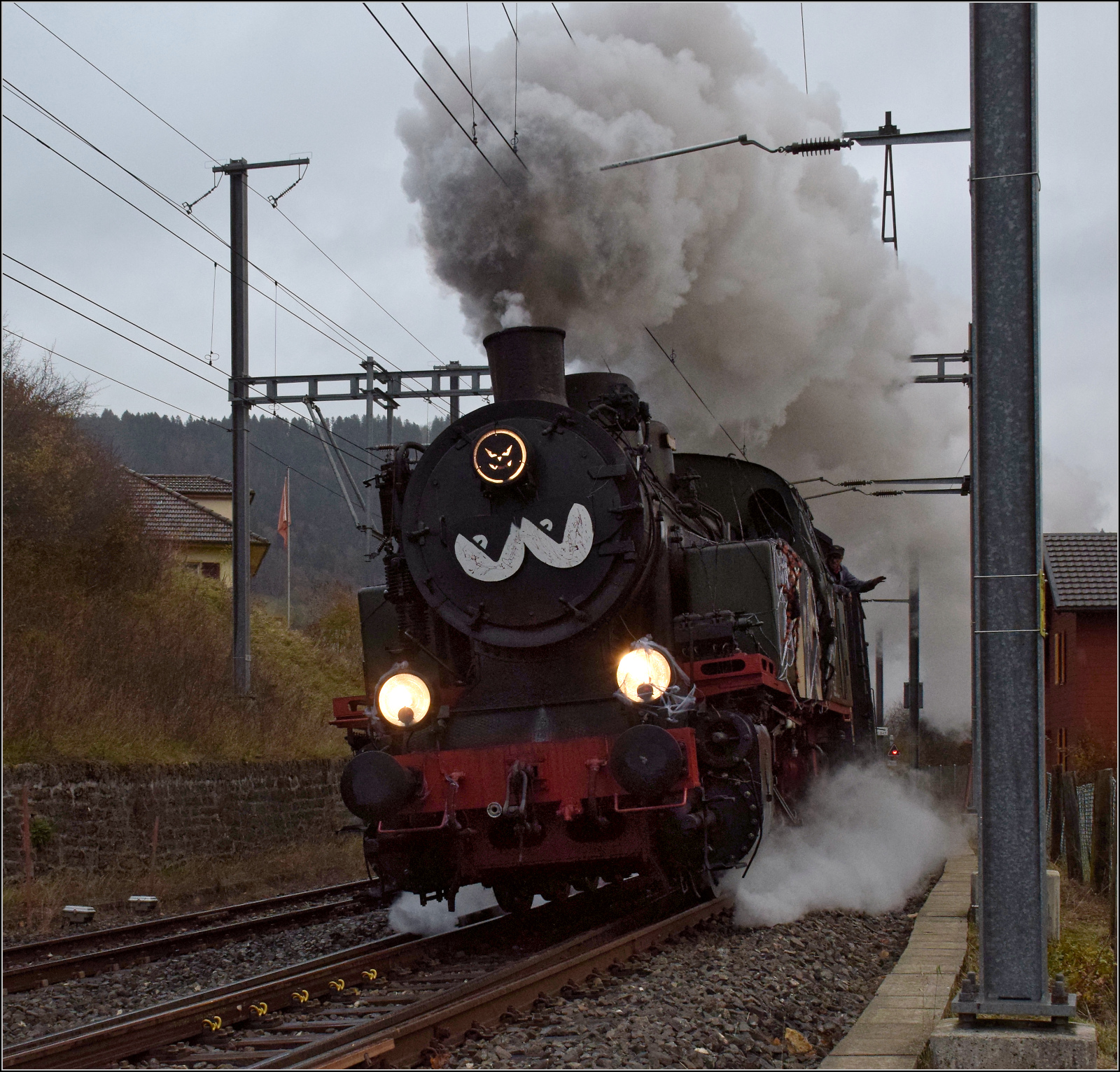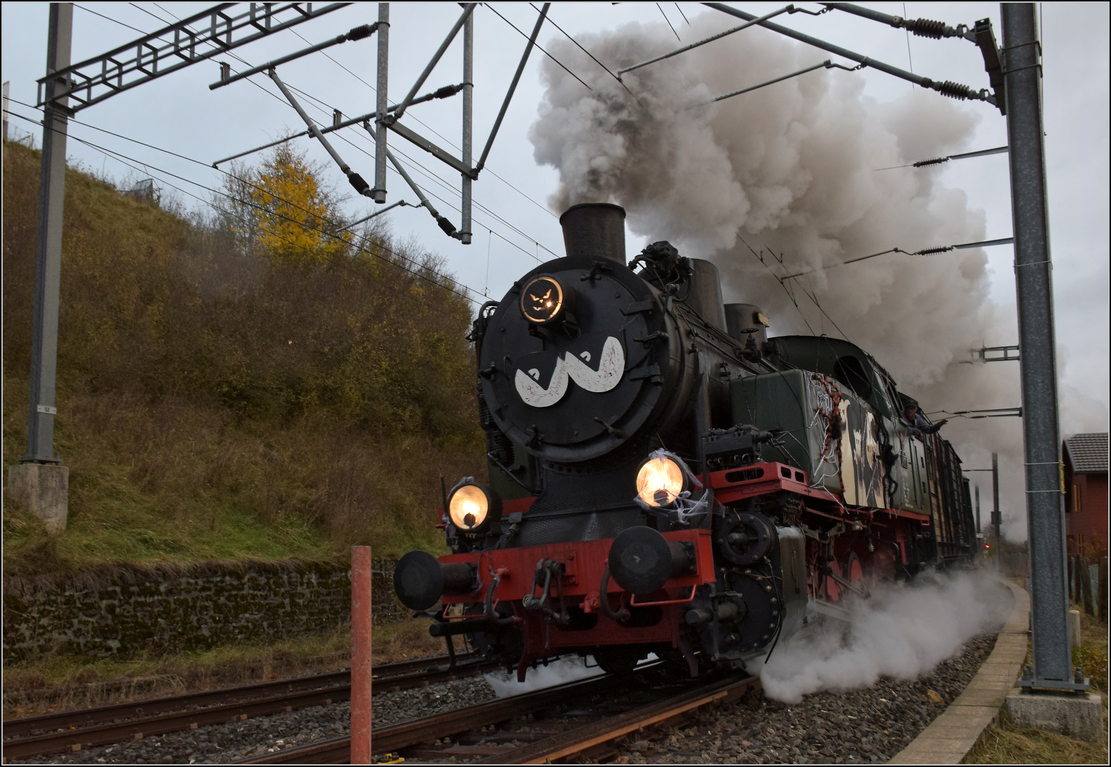 TKp 16 'Śląsk' in Halloweenverkleidung auf dem Weg nach St-Sulpice. Travers, Oktober 2025.